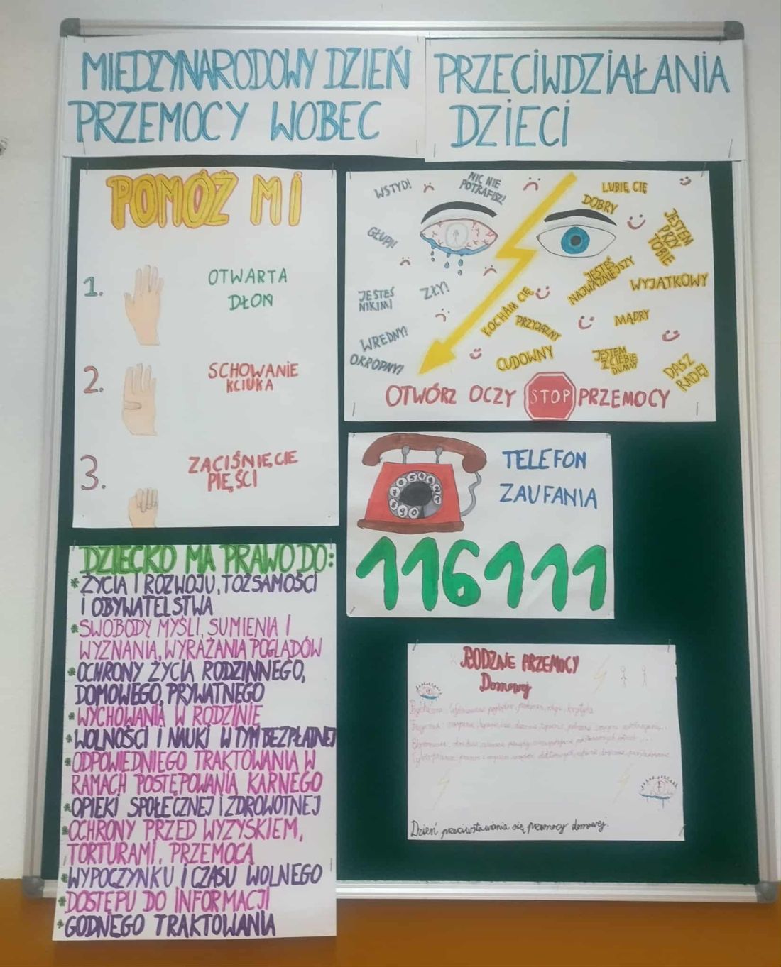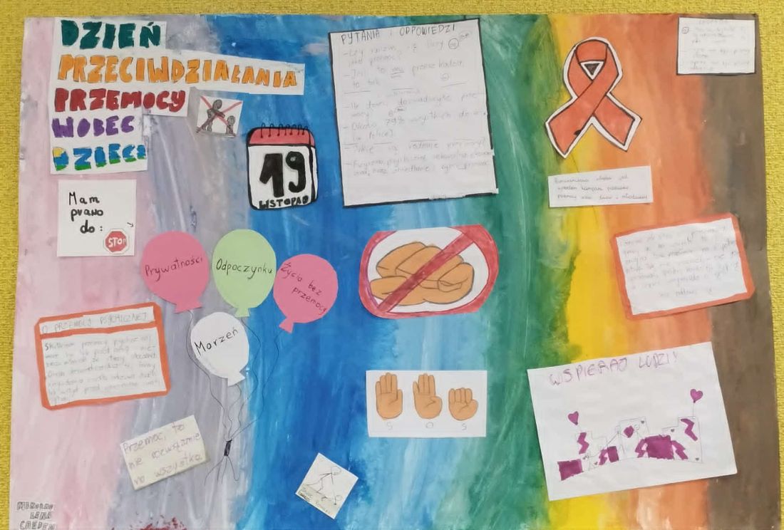 W listopadzie obchodzimy Międzynarodowy Dzień Przeciwdziałania Przemocy wobec Dzieci (19.11). Podjęliśmy tę tematykę również ze względu na realizowany niedawno Tydzień o budowaniu relacji. W przygotowanych przez klasy gazetkach widoczne jest, że tematyka - choć trudna - była uczniom przybliżana i to w wielu aspektach. Większość gazetek jest zrobiona bardzo solidnie, jest na nich wiele informacji, przygotowane są pomysłowo i ciekawie.