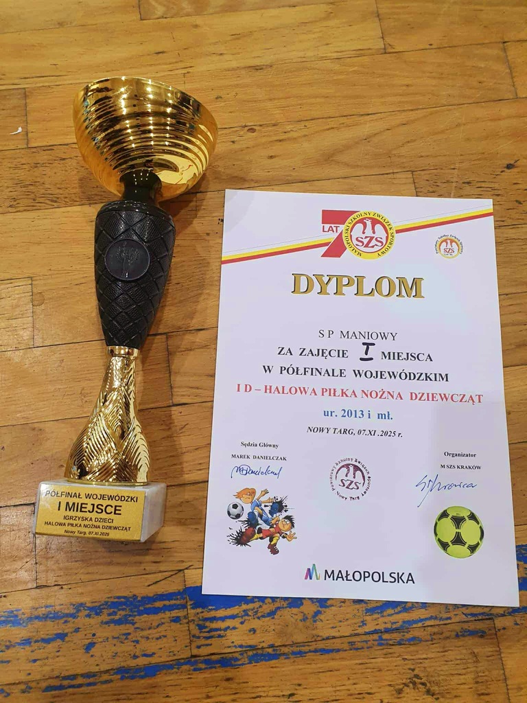 Dziewczęta wygrały wszystkie spotkania, zdobywając 8 bramek i tracąc zaledwie 3 w całym turnieju. Świetna organizacja gry, znakomita skuteczność w ataku oraz rewelacyjna postawa bramkarki sprawiły, że zespół z Maniów po raz drugi z rzędu zdobył tytuł Mistrza Półfinału Wojewódzkiego! Tym samym nasze reprezentantki wywalczyły awans do finału wojewódzkiego, który odbędzie się już niebawem w Nowym Sączu.