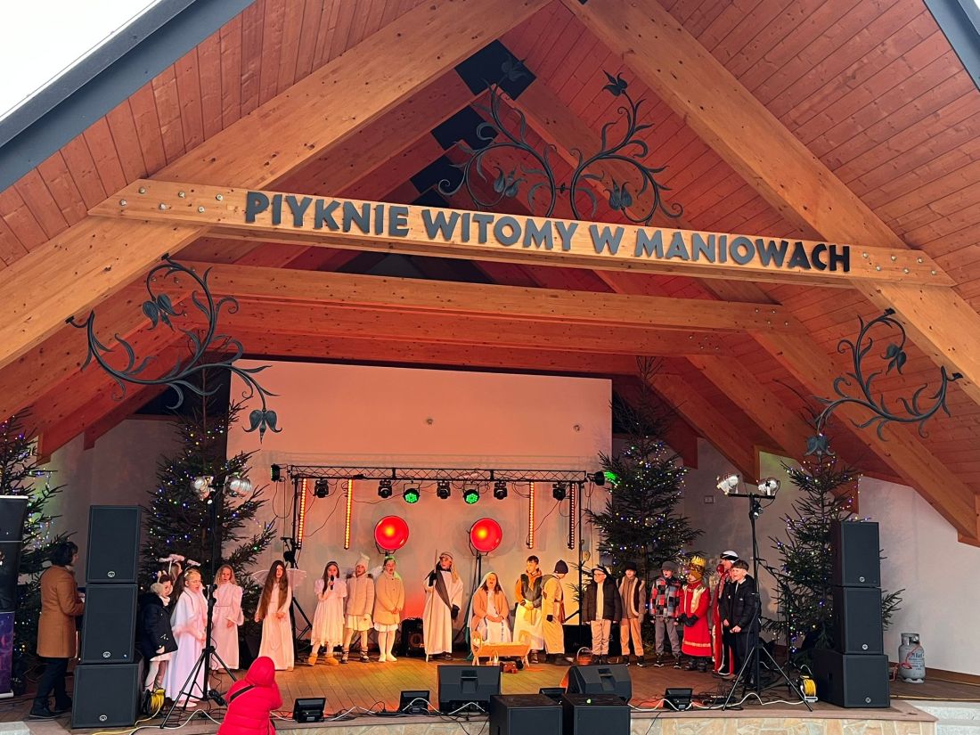W niedzielę, 21 grudnia 2025 roku, podczas Kiermaszu Bożonarodzeniowego w Maniowach, uczniowie klas trzecich naszej szkoły zaprezentowali jasełka. Swoim występem wprowadzili zgromadzonych w radosną, pełną ciepła atmosferę świąt. Uroczystość wzbogacili także uczniowie klasy pierwszej, którzy zaprezentowali piękny taniec.