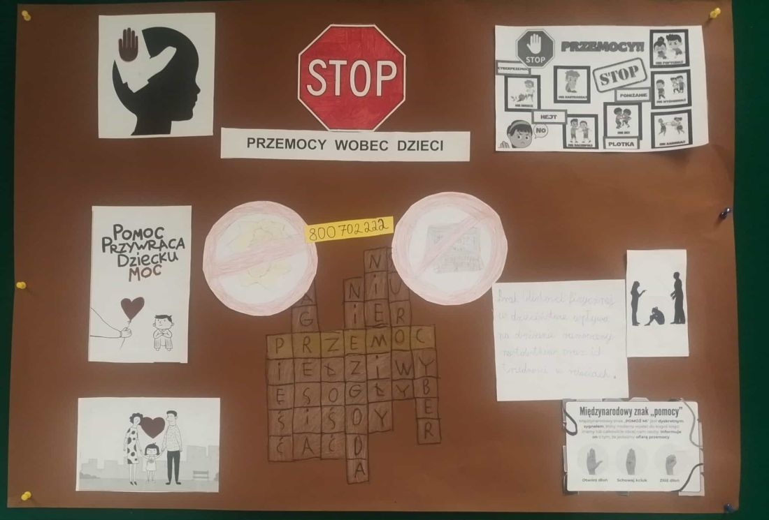 W listopadzie obchodzimy Międzynarodowy Dzień Przeciwdziałania Przemocy wobec Dzieci (19.11). Podjęliśmy tę tematykę również ze względu na realizowany niedawno Tydzień o budowaniu relacji. W przygotowanych przez klasy gazetkach widoczne jest, że tematyka - choć trudna - była uczniom przybliżana i to w wielu aspektach. Większość gazetek jest zrobiona bardzo solidnie, jest na nich wiele informacji, przygotowane są pomysłowo i ciekawie.