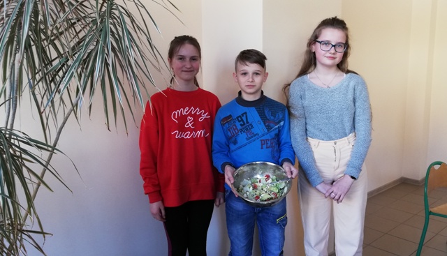 Klasa 6a na zajęciach z wychowawcą, przeprowadziła warsztaty kulinarne na temat zdrowego odżywiania się. Uczniowie w grupach przygotowywali smaczne i zdrowe przekąski, które później wspólnie konsumowali. Głównie były to sałatki owocowe. Podczas warsztatów uczniowie prezentowali także swoją wiedzę na temat wartości odżywczych produktów wykorzystanych do zrobienia przekąski. Nasz pochodzący z Ukrainy kolega Olek, dodatkowo przygotował wraz z mamą, ukraińską sałatkę warzywną, których poczęstował wszystkich:) Była pyszna i bardzo zdrowa!
